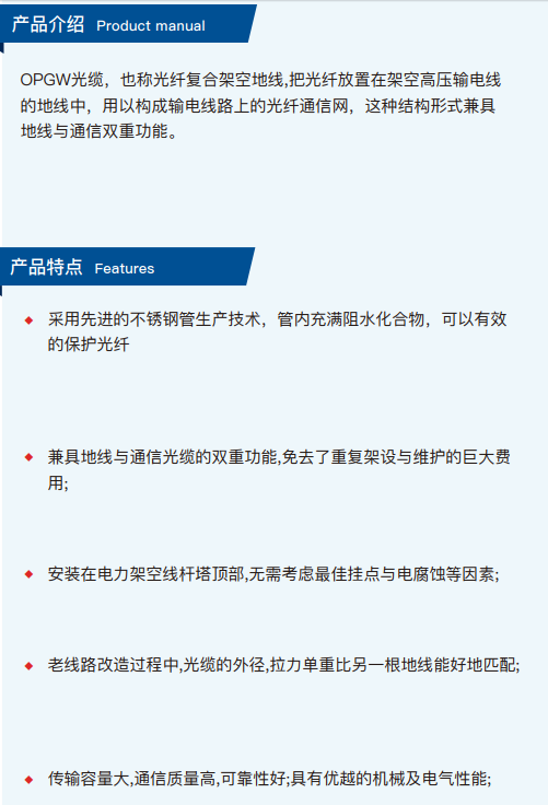 OPGW光纜,也稱光纖復(fù)合架空地線,把光纖放置在架空高壓輸電線 的地線中,用以構(gòu)成輸電線路上的光纖通信網(wǎng),這種結(jié)構(gòu)形式兼具 地線與通信雙重功能。
